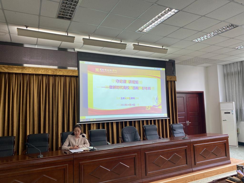 院长熊泽文、副院长熊火花、何川、门涛分别就管理的常规教学、实践教学、科研工作做了安排和部署。党委副书记王孝琴就学生工作尤其是新生返校、军训、课堂考勤等工作内容进行总结,随后王孝琴主持开展全体教职工“守纪律 讲规矩——做新时代高校四有好教师”主题学习。在明确新时代高校教师职业行为十项准则后王孝琴为教职工做了警示教育和案列分享。