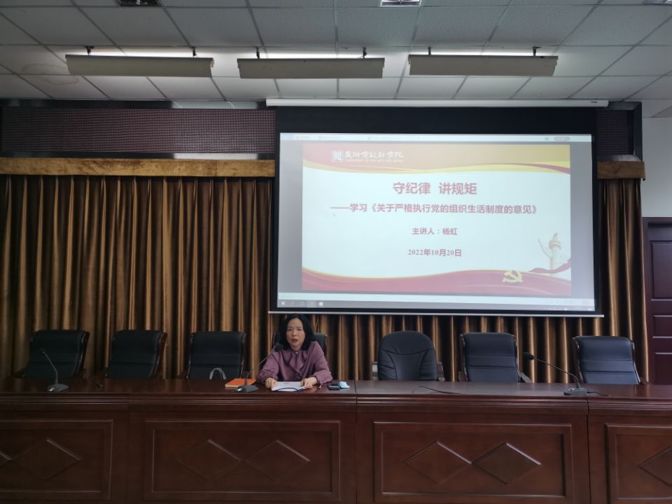 杨虹向全体教职工党员作了《守纪律 讲规矩——学习< 关于严格执行党的组织生活制度的意见>》的专题党课,强调了组织生活的严肃性和规范性,要求各党支部严格执行党的组织生活制度,落实好“三会一课”制度,强调全体党员要积极参与组织生活,严格遵守党纪党规。