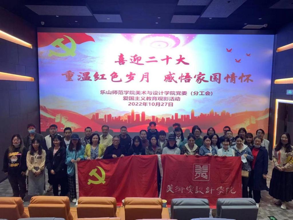 本网讯(文图/王建军)为庆祝党的二十大胜利召开,美术与设计学院党委组织教职工党员和部分学生党员于10月27日在乐山金杯影院观看爱国主义题材电影《万里归途》,开展“重温红色岁月,感悟家国情怀”的特色党日活动。