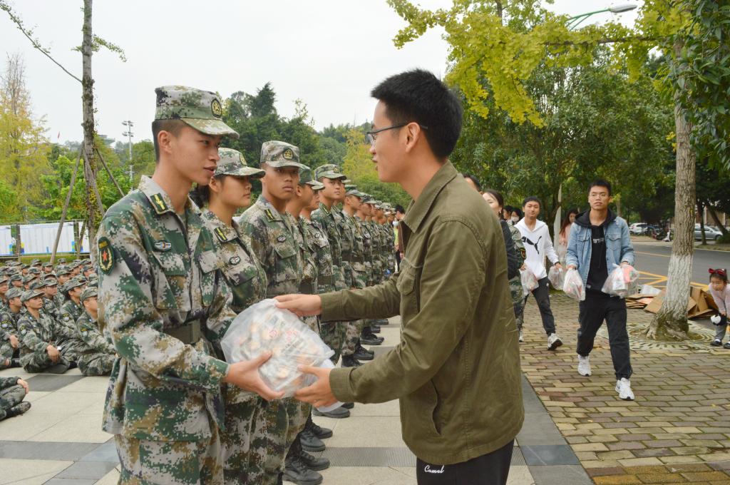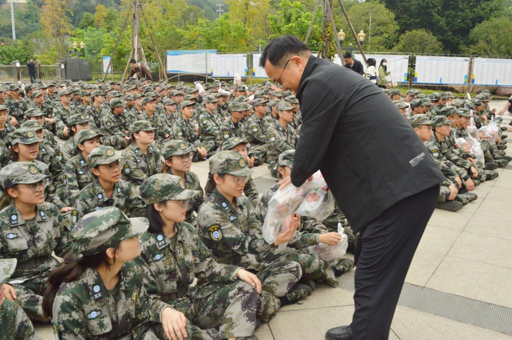 随后,学院领导、老师们向教官和同学们发放了慰问品,为在艰苦训练中的同学们带去了凉凉深秋中的一份温暖。