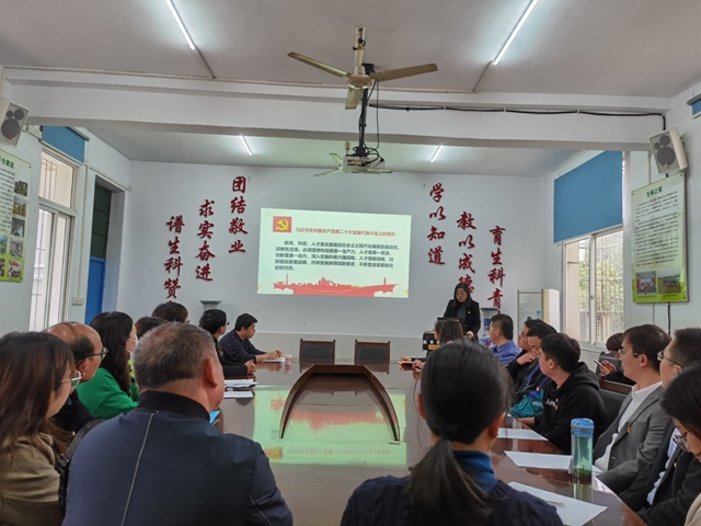 本网讯(文、图/易秀琴)10月27日下午,生命科学学院党委组织全体教师党员在博雅楼一楼会议室专题学习党的二十大精神,会议由学院党委书记杨益主持主讲,学院30余名教师党员参加了专题学习会。