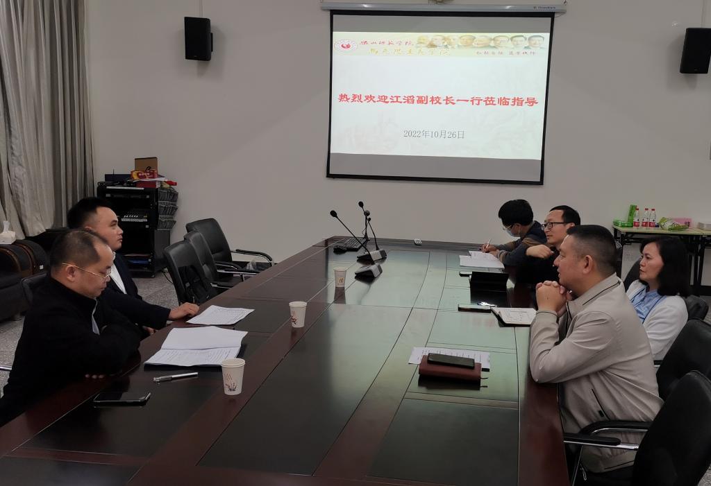 本网讯(文图/李良中)10月26日下午,学校副校长江滔和科研部部长农向到马克思主义学院调研、指导科研工作,在马院会议室进行了座谈会,马院书记李涛、院长郑文杰、分管科研副院长赖伟、以及办公室主任郭晖、科研秘书李良中等参加本次座谈。