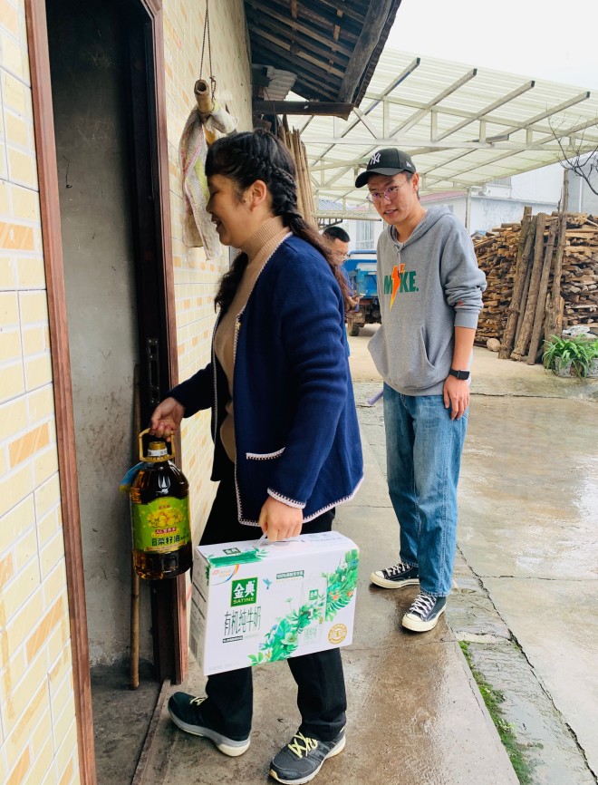 随后,彭杨一行来到对点帮扶村民家中,与村民展开亲切交流,了解近期基本情况,并为他们送上了大米、牛奶、食用油等日常生活用品。