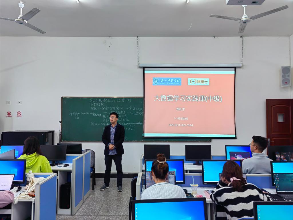 本网讯(文、图/贾礼平)为了更好的促进我院学生的实践动手能力培养,数理学院在应用统计学、金融数学和数学与应用数学专业学生中,根据学生的兴趣择优选取了40名同学参加了由教育部组织的“1+X”《大数据分析》(中级)职业培训,并于10月30日开始在实训大楼B605进行为期一周的强化培训。