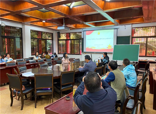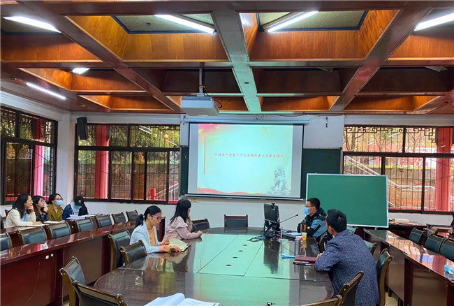 本网讯(文、图/薛文娟)11月3日下午,马克思主义学院王希贤老师应邀来到旅游与地理科学学院,为学院教职工解读中国共产党第二十次全国代表大会精神。学院党委书记徐秀云同志主持本次学习活动。