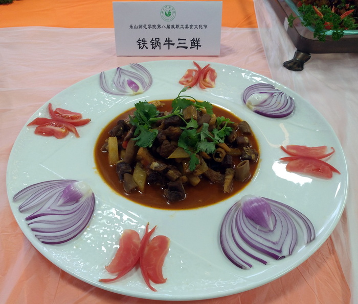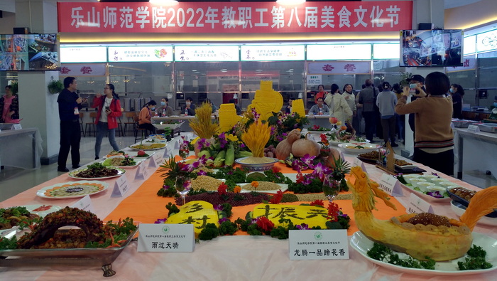 本网讯(文/代成刚、图/代成刚、周玉枝、龚金华)为了打造和谐、健康、文明的校园文化,展示教职工和后勤厨师的厨艺技能,提高全校师生的文化生活质量,由校工会组织开展的乐山师院教职工第八届美食文化节,于11月3日在百果苑学生食堂一楼景苑餐厅如期举行。后保部分工会参赛菜品再次荣获一等奖;后保部荣获优秀组织奖,后保部参赛的菜品中有五个菜品荣获“最受教职工欢迎的十大菜品之一”荣誉称号。