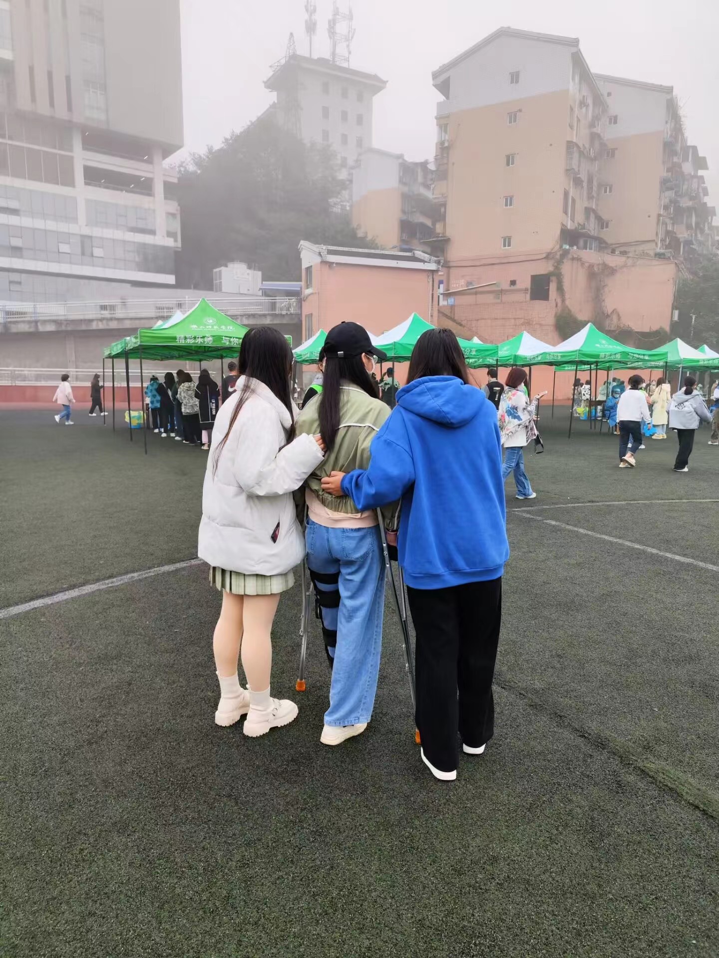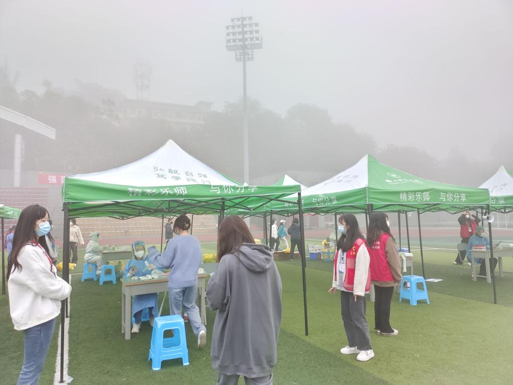 在校园核酸检测点,身穿志愿者服装的数理学院志愿者们,耐心引导同学做核酸,他们有的在现场维护秩序,有的引导扫码,有的耐心细致的帮助师生们解决问题。在寝室,志愿者们主动关心生病的同学。2022级数应1班吴昕儒同学,因刚做完膝盖手术,目前还在恢复期,志愿者们帮她打饭、提水,搀扶着去核酸点检测,帮助她度过这一特殊时期。在志愿服务过程中,我院学子充分践行了“奉献、友爱、互助、进步”的志愿服务精神,让生活上行动不便或有其他困难的同学及时得到帮助,为学生安心学习创建了一个良好环境。