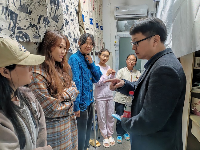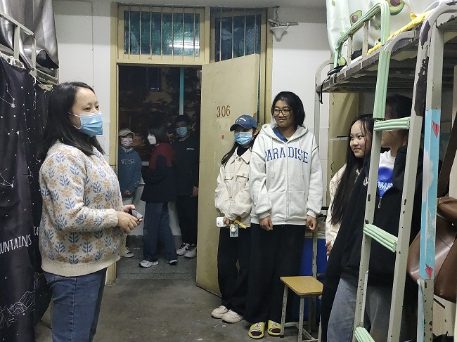 本网讯(文/斯郎娜措、图/谢明珠)为切实落实学校关于疫情防控的部署和要求,11月4日晚,旅游与地理科学学院党委副书记冉勇、学生管理科科长江纳、各年级辅导员和学院主要学生干部、代理班主任、考研助理共同深入学生宿舍和考研自习室,走访慰问学院学生。