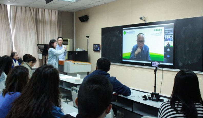 本网讯(文/段誉、伍明菊 图/陈思雨、卿万余) 11月1日,四川省2022年国家通用手语盲文培训暨语报试点工作研讨会在我校弘毅楼504A、504B顺利进行。本次通用手语培训班邀请了国内知名手语专家徐聪老师、邱丽君老师和仰国维老师为学员授课。
