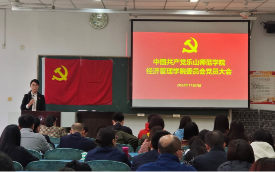 本网讯(图、文/黄欣)11月3日下午,经管学院在行知楼111教室召开了党委与纪委委员换届选举大会。经管学院院长邓健、党委书记郭晓黎、党委副书记丁敏娜以及学院全体师生党员参加了本次大会,会议由郭晓黎主持。