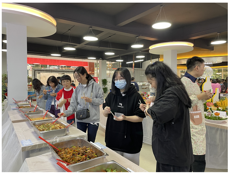 本网讯(文/黄宽娜 图/刘兴龙)为进一步丰富教职工文化生活,打造昂扬向上、健康文明的教职工文化,增强教职工健康、科学、营养膳食意识,展示教职工团队厨艺技能与团队精神,提升教职工幸福指数,经过各方精心准备,校工会于2022年11月3日下午在学校百果苑一楼餐厅,成功举办第八届教职工美食文化节。