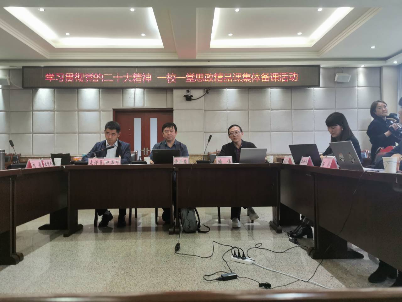 本网讯(文、图/赖伟)为进一步推进党的二十大精神进课堂,引导教育工作者和学生认真学习党的二十大精神,坚定不移听党话、跟党走,2022年11月3日下午,乐山师范学院马克思主义学院与乐山市教育科学研究所共同开展了“学习贯彻二十大精神,一校一堂思政精品课”活动。活动以线上线下同步方式进行,乐山市教育科学研究所所长许泽能主持,乐山市各区县中小学教研室、各学校教师数百人参加了线上备课会议,马克思主义学院副院长赖伟作为主讲嘉宾参加了会议。主会场设于乐山市教育局。