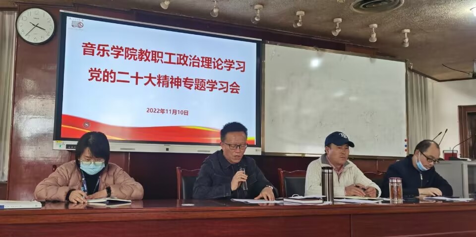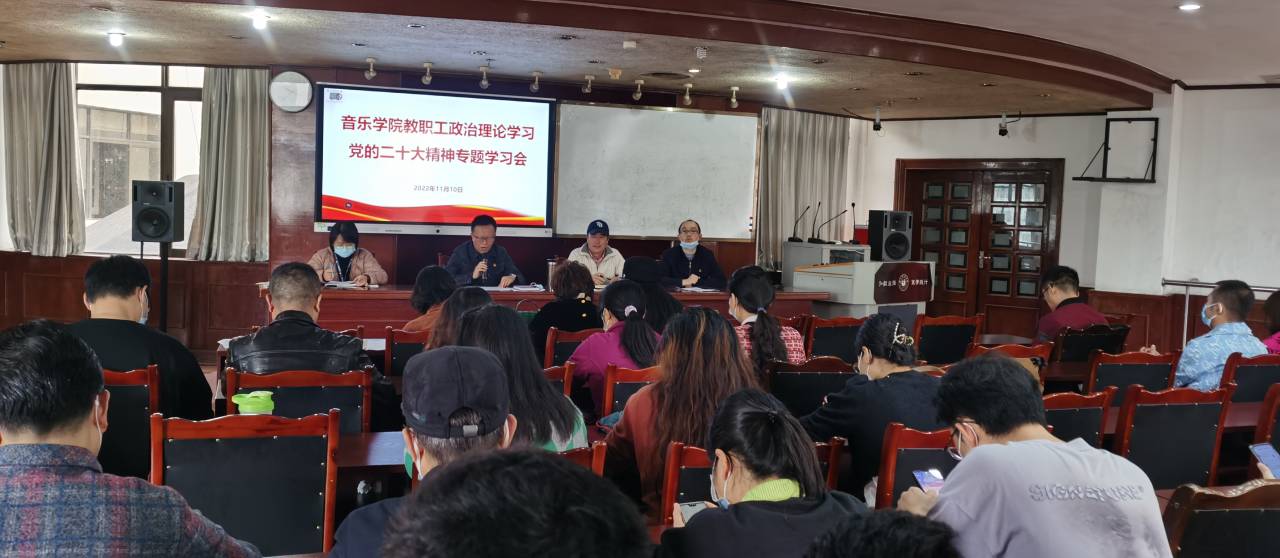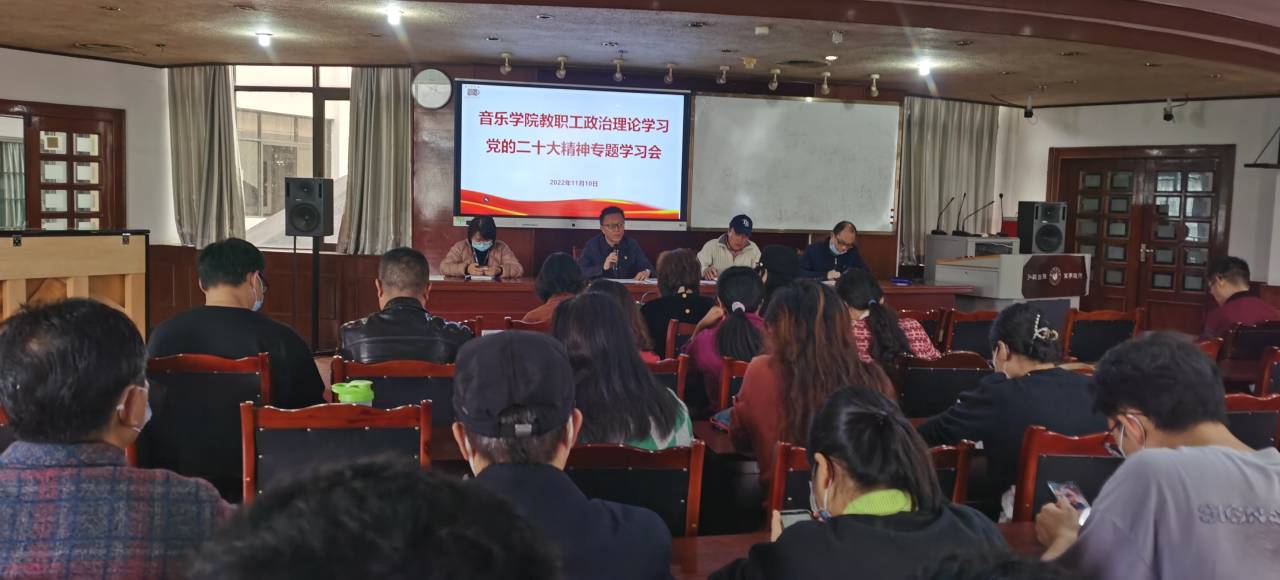 本网讯(文图/毛敏)11月10日,音乐学院召开教职工大会,专题学习党的二十大精神,学院党委书记罗谊恒主持学习会,音乐学院全体教职工参加了学习会。