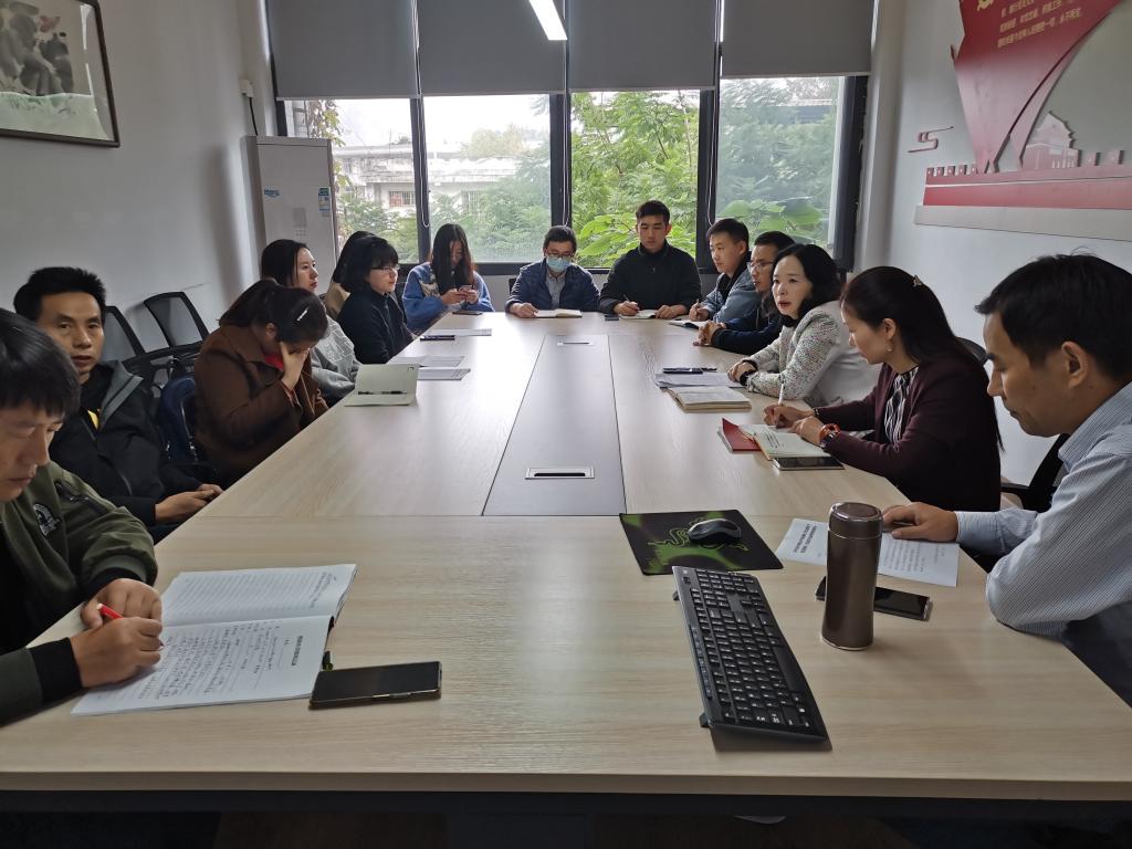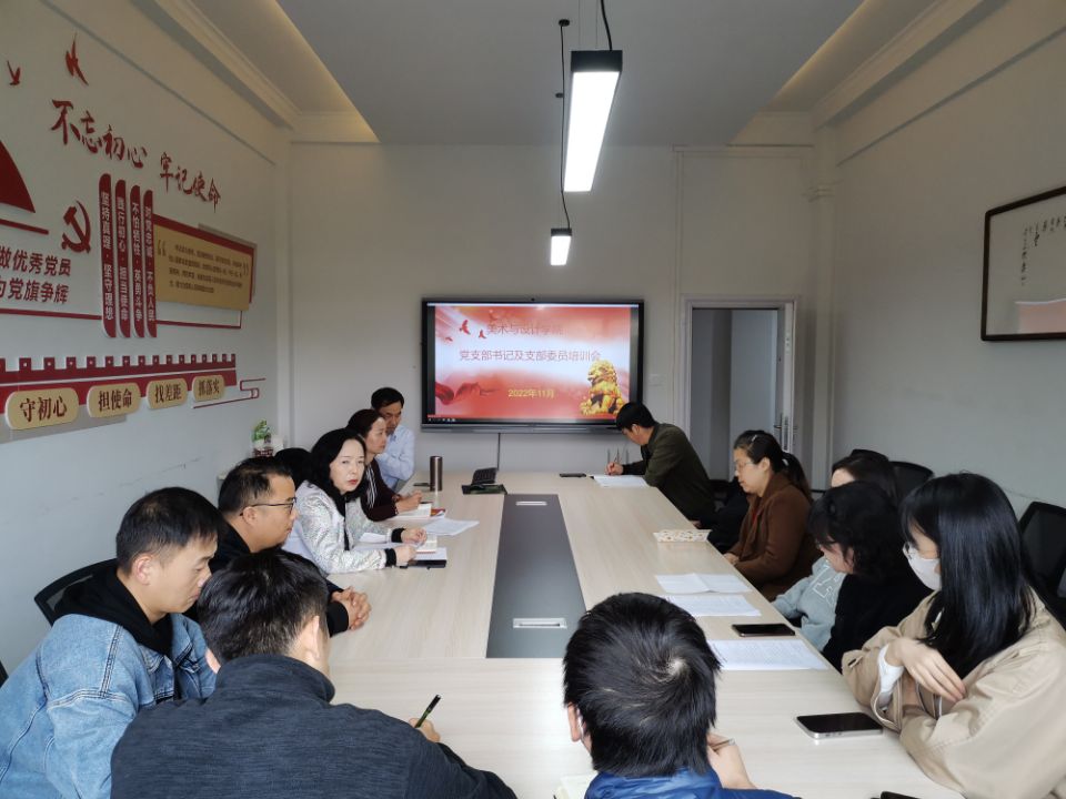 本网讯(文/刘桐江 图/崔玉)11月10日中午,美术与设计学院组织召开党支部书记及支部委员培训会,学院党委副书记王孝琴,教工、学生党支部书记、支委参加培训会,由学院党委书记杨虹主持。