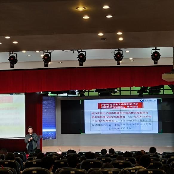 开班仪式结束后,马克思主义学院教师韩俊为学员做了题为“高举旗帜、凝聚力量、团结奋进——准确把握党的二十大精神的核心要义”的讲座。韩老师在深刻的理论知识讲解中辅之以生动的现实例子,使同学们对民主、文化自信、绿色发展等方面有了新的认识。
