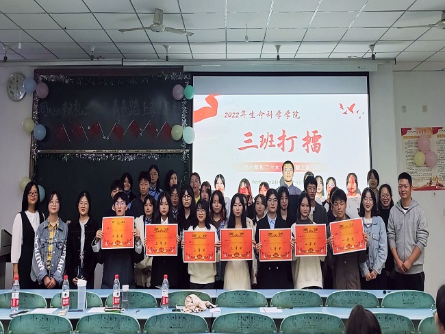 活动伊始,由主持人介绍评委及比赛规则之后,2022级七个新生班级逐一上台展示其班徽、班规、班训以及课上与课下的风采,与此同时也展示了精彩绝伦的表演。生物科学专业二班用寥寥几幕就为我们展现了党领导下的中国青年——为革命奋不顾身,为抗疫无私奉献;生物技术专业一班表演的节目是《错位时空》(五四特别版),带领我们回忆了革命先烈们那段艰辛的革命岁月,激发了我们内心的爱国热忱。生物技术二班给我们带来了慷慨激昂的诗朗诵和优美的舞蹈,展现了青年的激情和活力。最终生物科学专业二班荣获一等奖,生物科学专业三班与生物技术专业一班获得了二等奖,其余各班获得了三等奖。