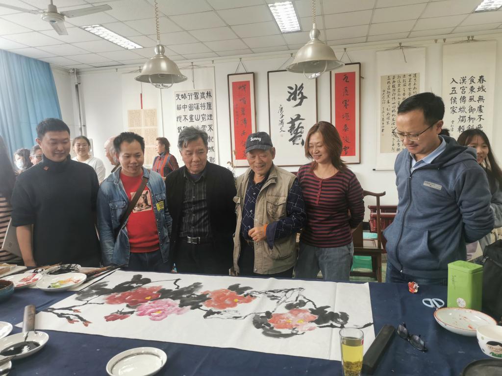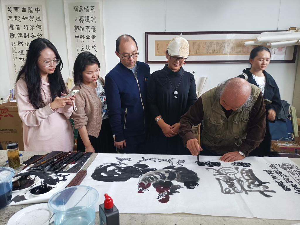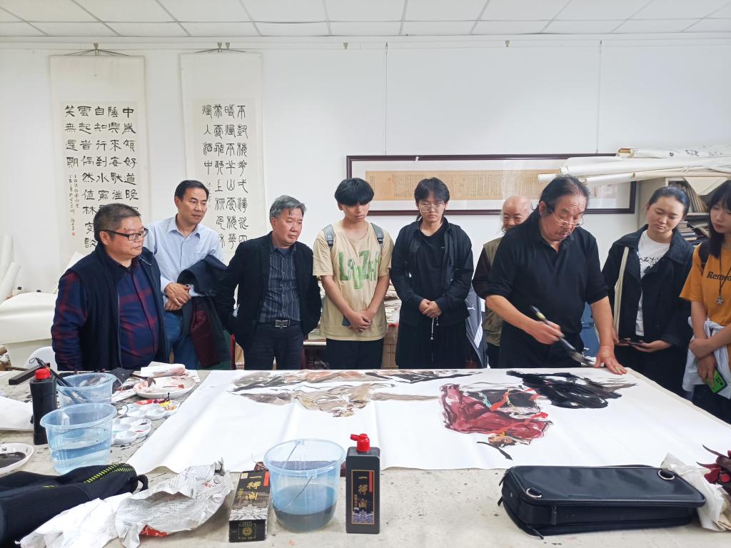 系列讲座结束后,八位书画家和国画教研室全体教师、部分学生在弘毅楼407开展了教研活动,书画家们现场进行示范讲解,让师生们对嘉州画派的笔墨技法、色彩特点、以及国画传统人物、山水、花鸟的技法特点有了更直观的感受和认识。书画家们娴熟的用笔,生动的线条,色墨的渗化,巧妙的构图,精湛的技法,让师生们深深叹服。同时书画家们与国画教研室老师们进行了深入交流,就国画创作对老师们进行了指导,现场气氛热烈、活跃。