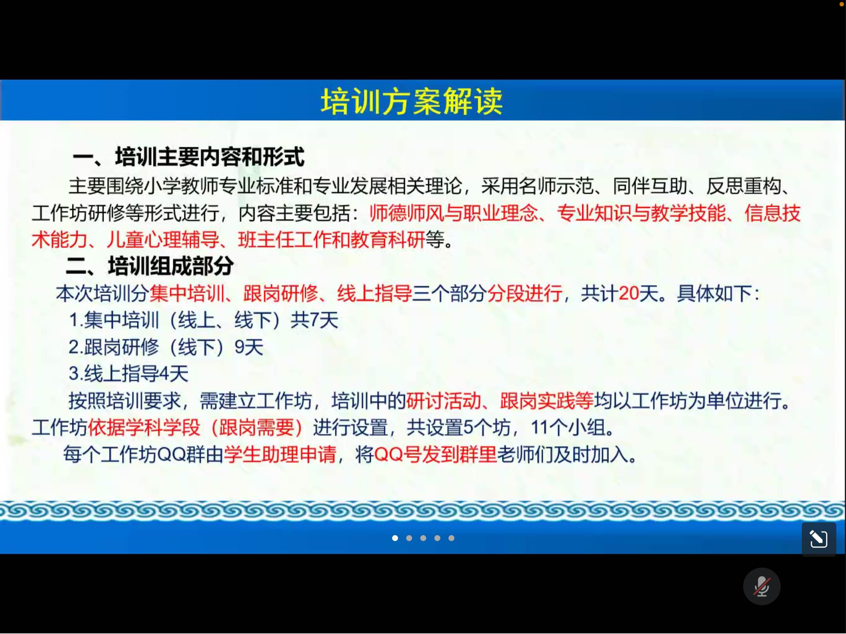 张广云对培训方案进行了解读,介绍了此次培训的内容安排、工作坊建设和作业任务安排等。