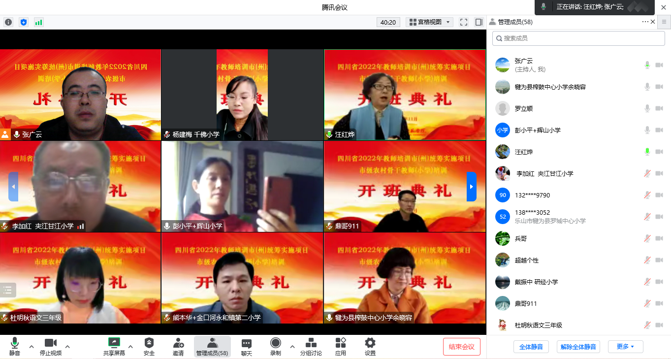 本网讯(文图/李巧玥)14日上午,由乐山师范学院教育科学学院承办的四川省2022年教师培训市(州)统筹实施项目市级农村骨干小学教师培训开班典礼顺利开展。乐山师范学院教育科学学院党委书记罗立顺、院长汪红烨、党委副书记兼纪委书记何晓军、副院长徐世鼎、唐前军,项目首席执行专家、教师教育公共课教研室主任张广云,班主任杨林、孙来成及乐山市各区、市(县)50名市级骨干班主任及骨干学科教师参加了此次典礼,开班仪式由徐世鼎主持。