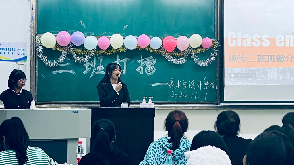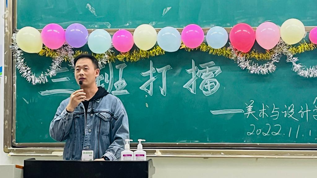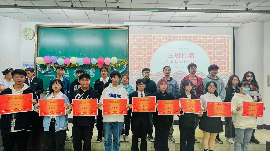 本网讯(文/胡思琪、图/赵晗屹)为弘扬“弘毅自强,笃学践行”的校训精神,展现我院新生班级特色与风采。美术与设计学院于11月11日晚上7点,在行知楼314教室开展2022级“三班打擂”特色校园活动。出席本次活动并担任评委的有辅导员任自林、刘桐江,部分学生干部及22级新生代表。