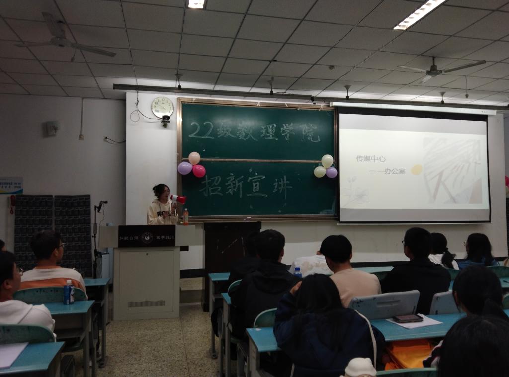 本网讯(文/马梓菡 图/代凡)11月12日,为进一步丰富学生校园文化生活,持续推进团学组织队伍健康发展,数理学院在行知楼214和225教室开展了学生分会、分团委、传媒中心三支团学组织招新见面活动。本次活动由三个组织学生干部负责人牵头开展,学院分团委书记郑新美老师以及22级新生参加本次活动。