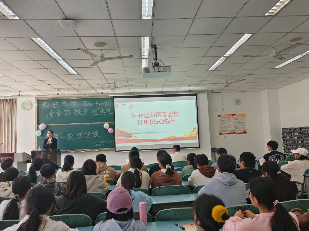 本网讯(文/尚荣丽 图/申莹)为进一步提升广大团员青年的理论知识素养,增强我院团学干部及团员青年的思想水平和工作能力,引导团员青年在日常学习和生活中发挥先锋模范带头作用,做一个优秀的时代青年,11月17日中午,数理学院在行知楼101举行第41期青春团校开班典礼暨开班第一课。参加本次开班典礼的有我院党委副书记左莉,学生科长陈盈舟、分团委书记郑新美,分团委副书记李一飞同学、乐师红帆宣讲团4名成员及本期124名团校学员。