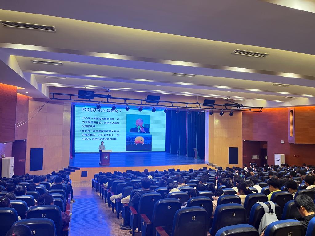 大学生心理健康教育讲座以“美好未来,从新开始”为主题。张嘉江老师讲述了大学生常见适应性困扰、面临的四大变化以及对策。一是重新确立合适目标;二是构建新的人际关系;三是积极管理生活。在同学们难以调节自我情绪时,可以通过心理咨询和朋辈心理辅导寻求帮助。