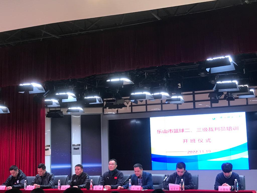 本网讯(文图/熊仪)11月19日至20日,由乐山市篮球协会主办,体育学院承办的2022年乐山市二、三级篮球裁判员培训班在我校成功举办,来自乐山市三所高校的300余人参加了培训。19日,开班仪式在学术报告厅举行。开班仪式由体育学院副院长张爱平主持。四川省篮球协会副主席王虹,体育学院院长张峰,乐山市篮球协会裁委会主任朱建伟,四川省篮球协会裁委会执行主任、篮球国际级裁判员余尾,乐山市篮球裁判委员会秘书长、篮球国家级裁判员李逊先生,乐山职业技术学院体育系教研室主任王偲又在主席台就坐。