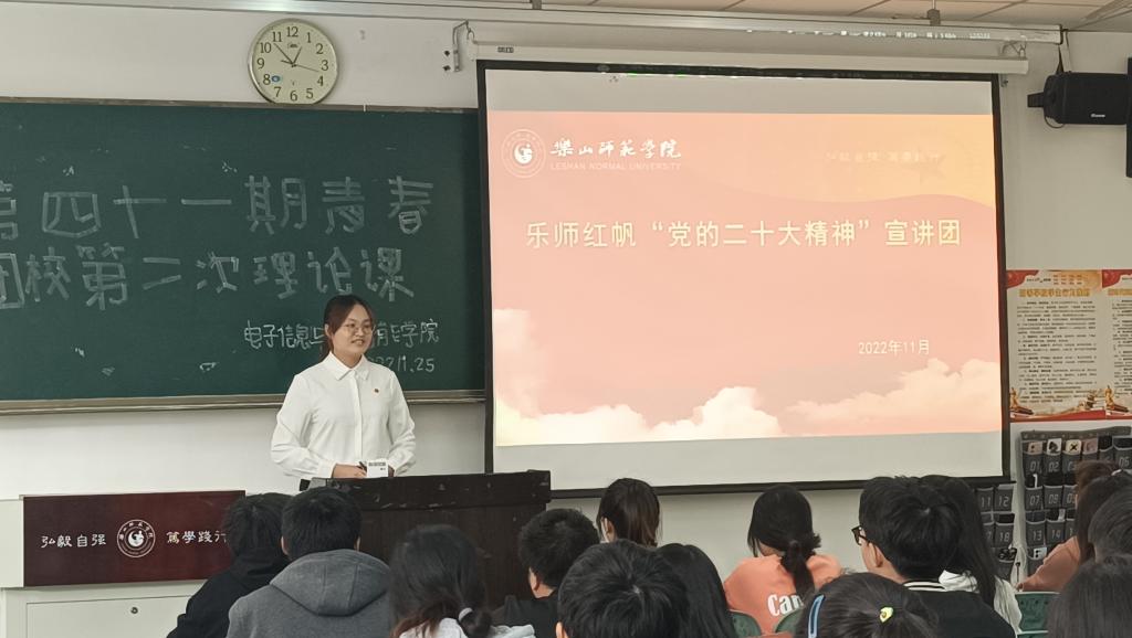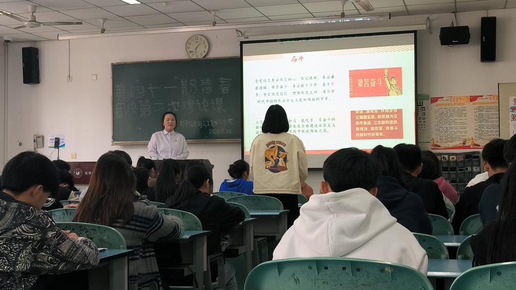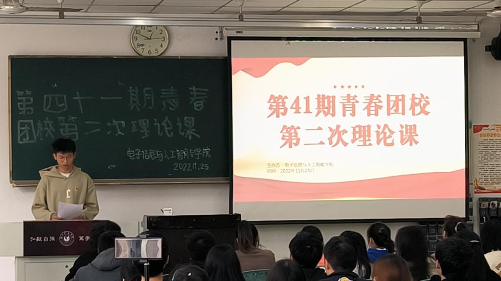 本网讯(文/熊金秋 图/邹湖洋、张哲维)为学习党的二十大重要精神,培养团员本身思想和整体素质,11月25日中午,电子信息与人工智能学院于行知楼213开展第四十一期青春团校第二次理论课活动。参加本次活动人员有马克思主义学院“乐师红帆”讲师曹恋、张宇、张恩泽以及第41期成员。分团委干事瞿玳杭主持本次团课。