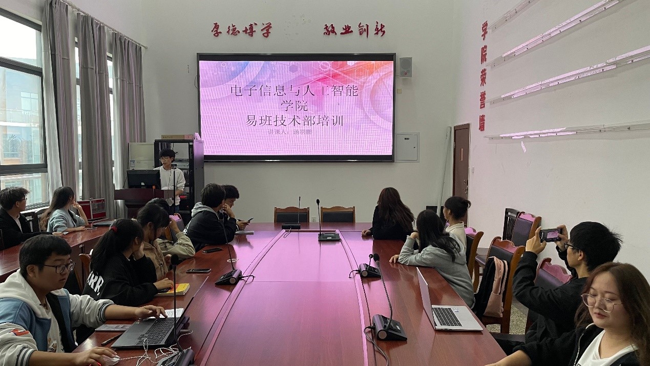 本网讯(文/高明睿 图/左子滔)为了更好的让22级易班新生干事了解并方便以后的工作与生活,提升专业能力,提高同学的学习兴趣和学术创新参与率,活跃学术思想。11月26日下午,电子信息与人工智能学院易班分站在特教c501组织开展重装系统培训。参与本次培训人员有领讲人20级计科1班汤羽鹏,易班站长杨玉旭,副站长徐庆杨,易班各部部长与22级易班干事。