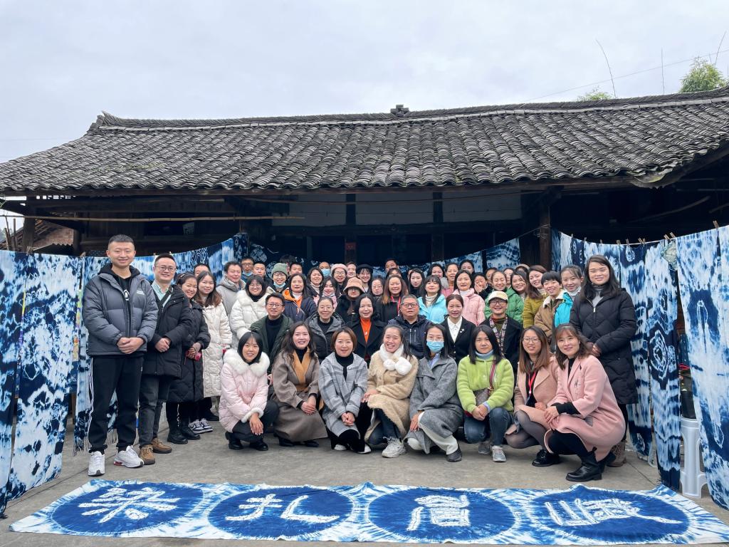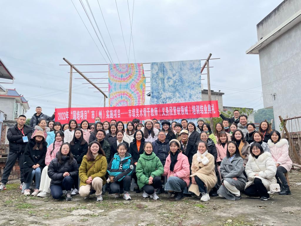 本网讯(文/陈丽娟 图/王永清)12月1日,美术与设计学院承办的2022年“国培项目”市(州)实施项目——市级农村美术骨干教师(义务段紧缺领域)培训结业典礼在乐山市第一批中华优秀传统文化传承基地——“峨眉扎染工坊”举行。学院党委书记杨虹、院长熊泽文、副书记王孝琴、副院长何川、熊火花与全体学员参加了典礼。