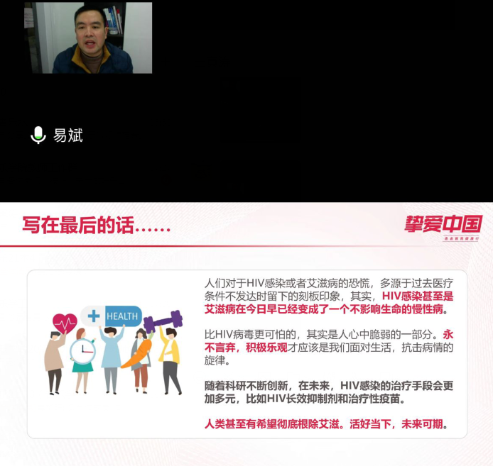 本网讯(文图/王寅涛)为深入宣传禁毒防艾相关知识和政策,营造禁毒防艾的良好氛围,同时为了增强大一新生“禁毒防艾,健康生活”的安全意识。12月4日,音乐学院邀请乐山市人民医院禁毒防艾教育科室主任易斌老师为音乐学院2022级全体学生进行线上禁毒防艾知识宣讲。