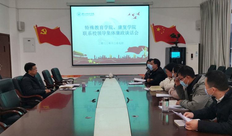 本网讯(文/兰芳 图/张敏) 12月7日,学校党委常委、副校长李朝晖到联系的特殊教育学院、康复学院开展了集体廉政谈话,谈话会在特教大楼A栋408会议室举行。特殊教育学院、康复学院全体处科级干部、院长助理参加了集体谈话会。