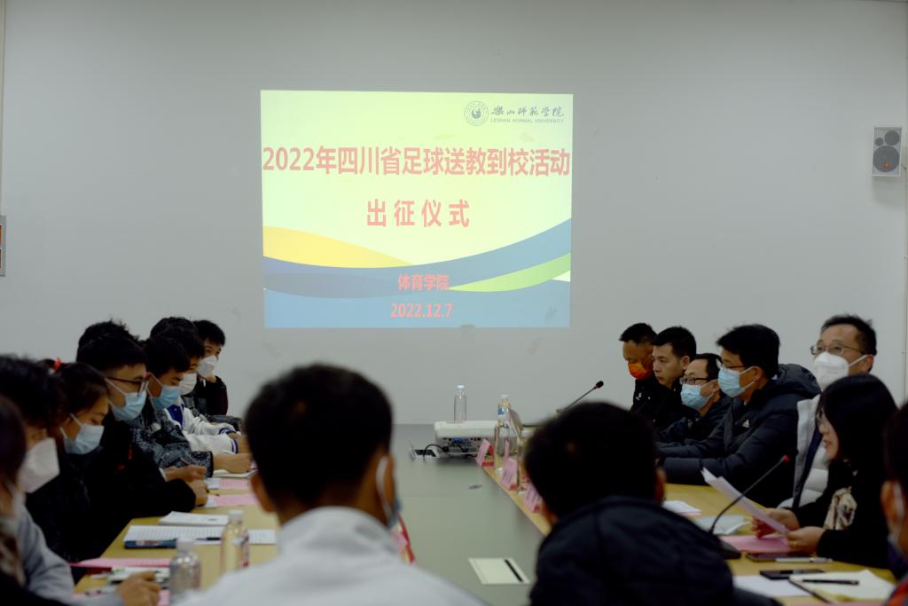 本网讯(文、图/熊仪)为深入学习贯彻党的二十大精神,贯彻落实习近平总书记关于体育的重要论述,根据四川省教育厅关于开展2022年四川省青少年校园足球送教到校活动的通知,充分发挥高校专业人才优势和服务地方经济社会的职能,缓解民族边远地区学校体育师资不足的问题,体育学院积极组织学生参与,通过两天的培训。12月7日,体育学院在会议室隆重举行“2022年四川省青少年校园足球送教到校活动出征仪式”,体育学院院长张峰、党委书记钟大勇、教学部副部长刘瑶瑶、党委学工部副部长南麒、体育学院党委副书记陈勋玮,副院长张爱平出席,足球专任教师、辅导员以及参加送教的14名学生参加了出征仪式,仪式由张爱平主持。
