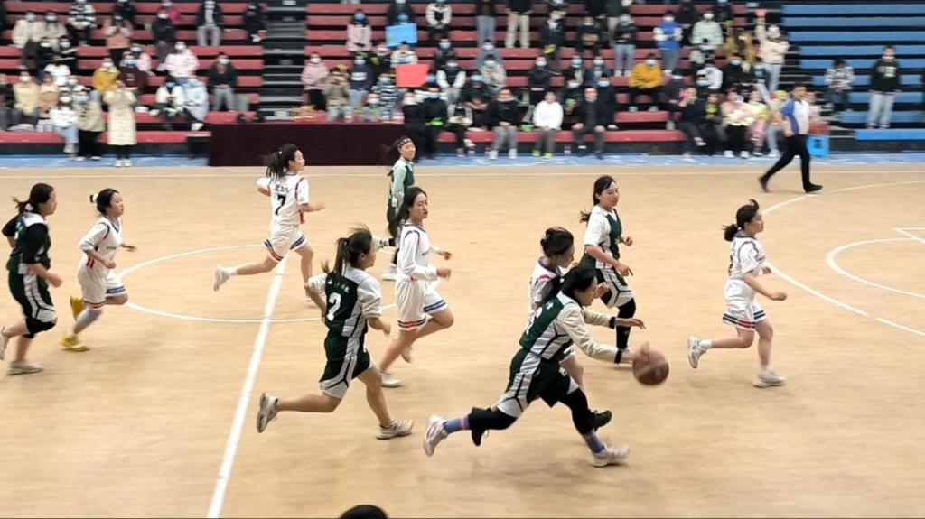 随着一声哨响比赛开始,旅地学院率先获得球权,同时电智学院也立马用封盖回应。双方球员积极进攻防守,经过一段时间的角逐,电智学院率先进球,旅地三分回应,并打出8:0进攻小高潮。电智学院教练及时暂停调整,随后电智学院的球员们不断突破内线寻找机会并缩小差距,第一节比赛结束,全场比分16:7,旅地学院暂时领先。第二节比赛开始电智学院做了人员调整,一上场就打出了8:0的效果,随后将比分反超,旅地紧咬比分但电智学院也不输气势,半场结束比分24:29,电智学院以五分优势拿下第二节。第三节是双方学院女子球员的对决,电智学院的女球员一上场就干劲十足,不断破势争球,双方势均力敌,第三节比赛结束,全场比分34:35。电智学院凭借一分优势将比赛推向白热化阶段。最后一节比赛开始,在决定比赛结果的回合里,电智学院的球员们不敢懈怠,充分展现出积极的防守态度和拼搏精神。双方你追我赶,比分交替领先,现场气氛达到高潮,观众席充满了尖叫声和呐喊声。现场电智学院球员们突破体力极限拼到最后一刻,打出完美配合结束了比赛,最后全场比分53:59,电子信息与人工智能学院取得了最后的胜利。