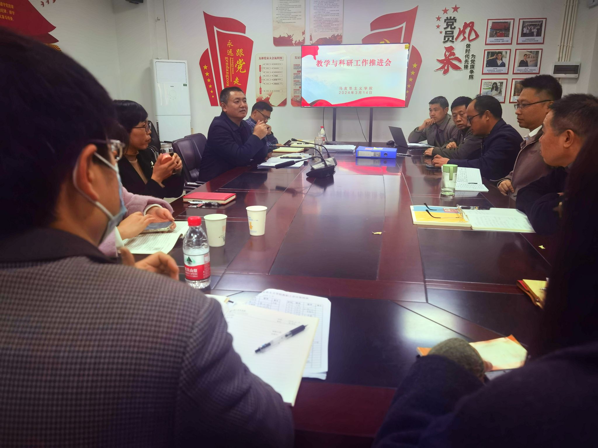 本网讯(文图/陈丽芳)3月15日,马克思主义学院在学院会议室举行科研教学工作推进会,共议马克思主义学院2024年科研教学工作重点,讨论科研及教学具体工作任务。马克思主义学院院长郑文杰主持会议,副院长赖伟、张茂一、党委副书记钟永淑、各教研室主任、教授及青年博士参加会议。