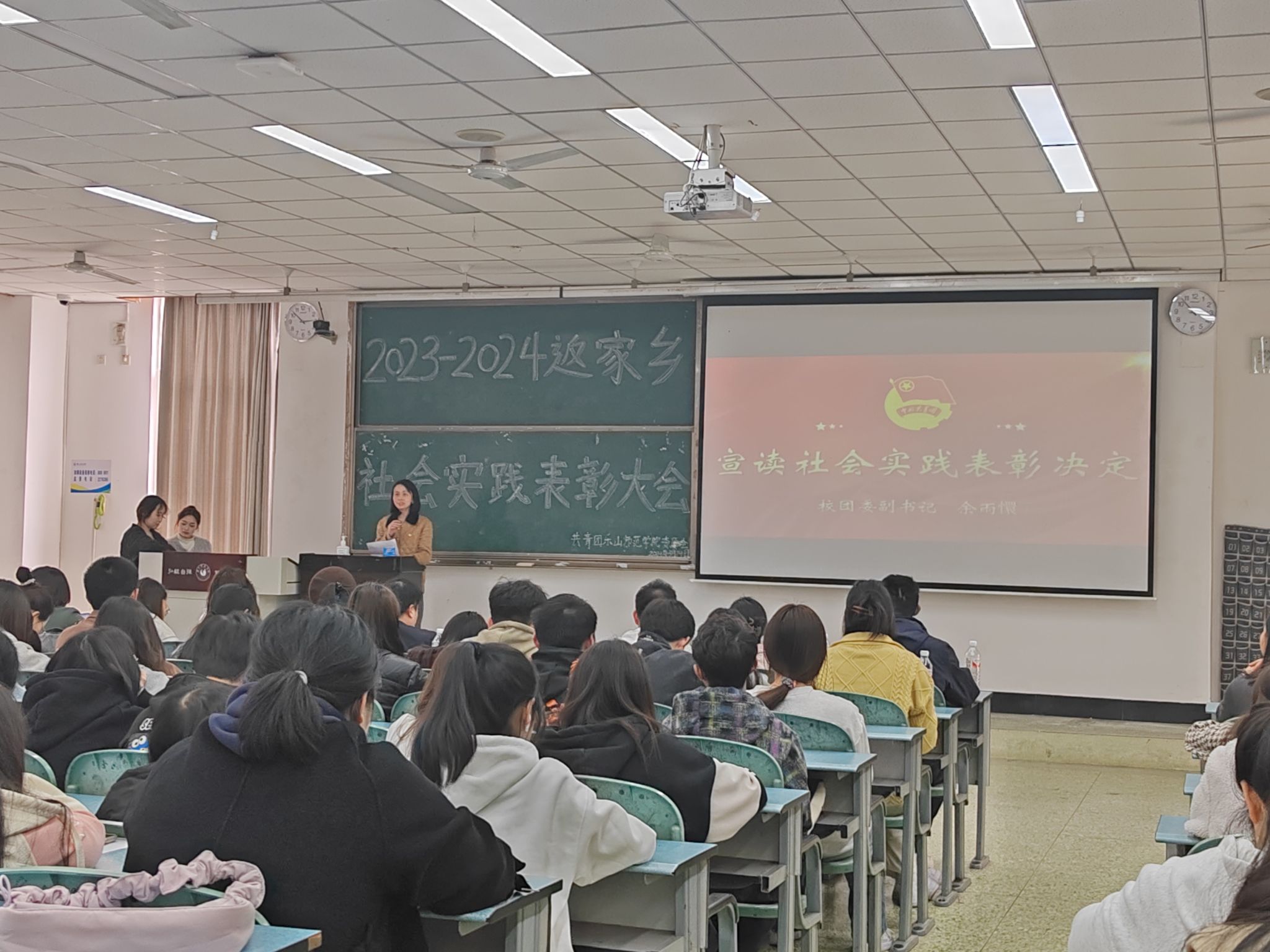 校团委副书记余雨懁宣读了学校关于寒假社会实践个人和团队的表彰决定。校团委书记李东最后做总结发言。他向同学们强调了目前大学生就业形式的严峻,鼓励同学们多学习,多实践,开阔眼界,锻炼自己,才能取得更好的发展机会。同时告诫同学们要多关心国家大事,不能“两耳不闻窗外事”,要将国家发展状态与个人对于未来的规划联系起来。要有吃苦耐劳的优良品质,敢于向上发展,敢于表现自己,不能“躺平”,要追求更优秀的自我。