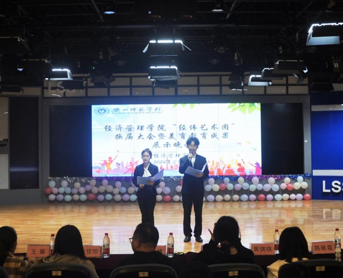 本网讯(文/杨思语、罗代丽 图/罗晓语、周欣怡)为进一步落实各级教育主管部门和学校对于加强大学生美育教育的相关要求,同时也是为了深化学院经纬艺术团品牌建设力度和检验学院艺术团训练成果。3月15日晚,经济管理学院于旷怡楼举办“经纬艺术团”换届大会暨美育教育成果展示晚会。经济管理学院分团委书记王东健、学院团学组织主要学生干部、艺术团主要负责人及现场300余名学生参加了本次大会。