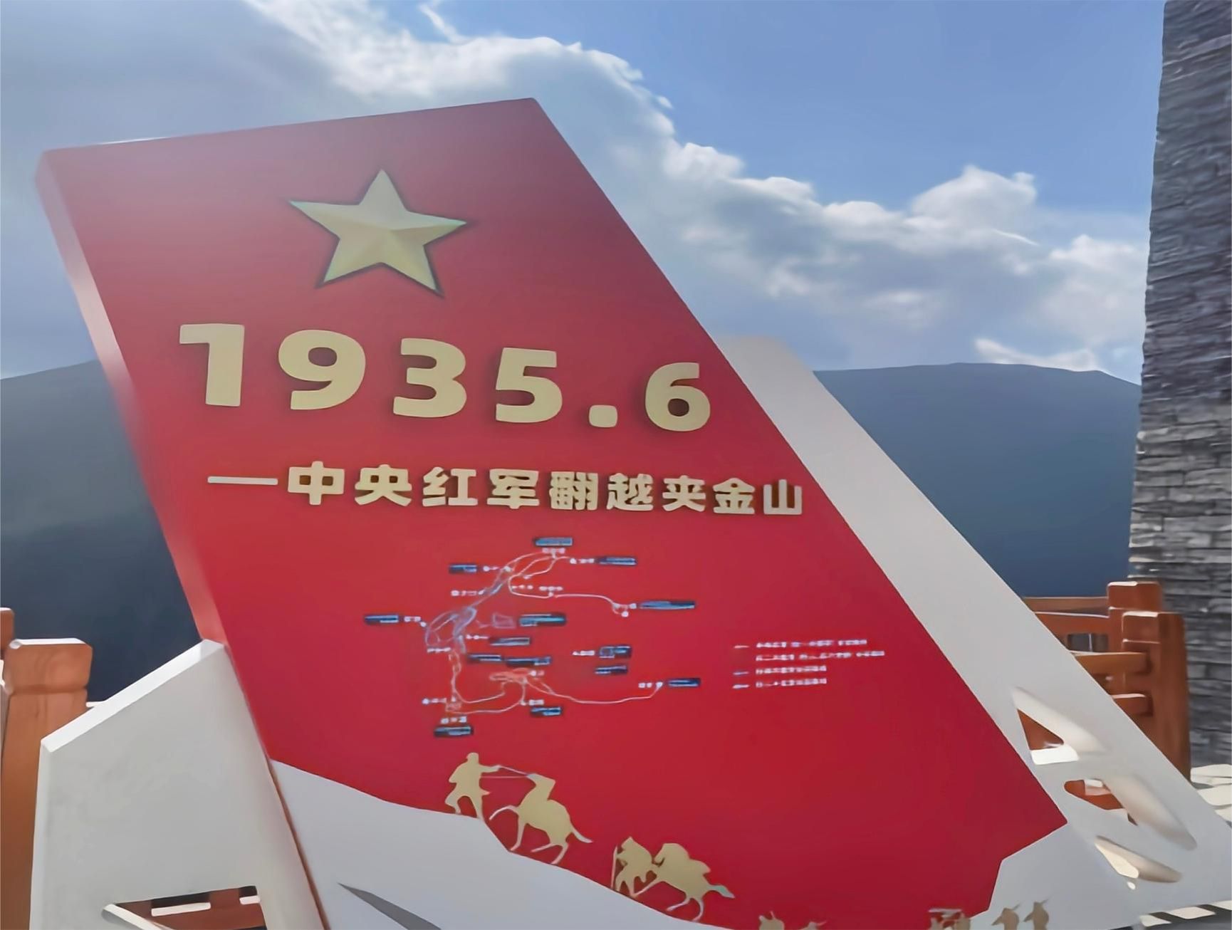 长征万里险,最忆夹金山。夹金山又名“甲金山”,海拔4114米,藏语称为“甲几”,夹金为译音,意为很高很陡的意思。位于小金县东南,属邛崃山脉,横亘于小金县达维乡与雅安地区宝兴县之间。这里地势陡险,山岭连绵,重峦叠嶂,危岩耸突,峭壁如削,空气稀薄,天气变化无常,当地流传着一首民谣:“夹金山,夹金山,鸟儿飞不过,人不攀。要想越过夹金山,除非神仙到人间!”就是对环境的真实写照。