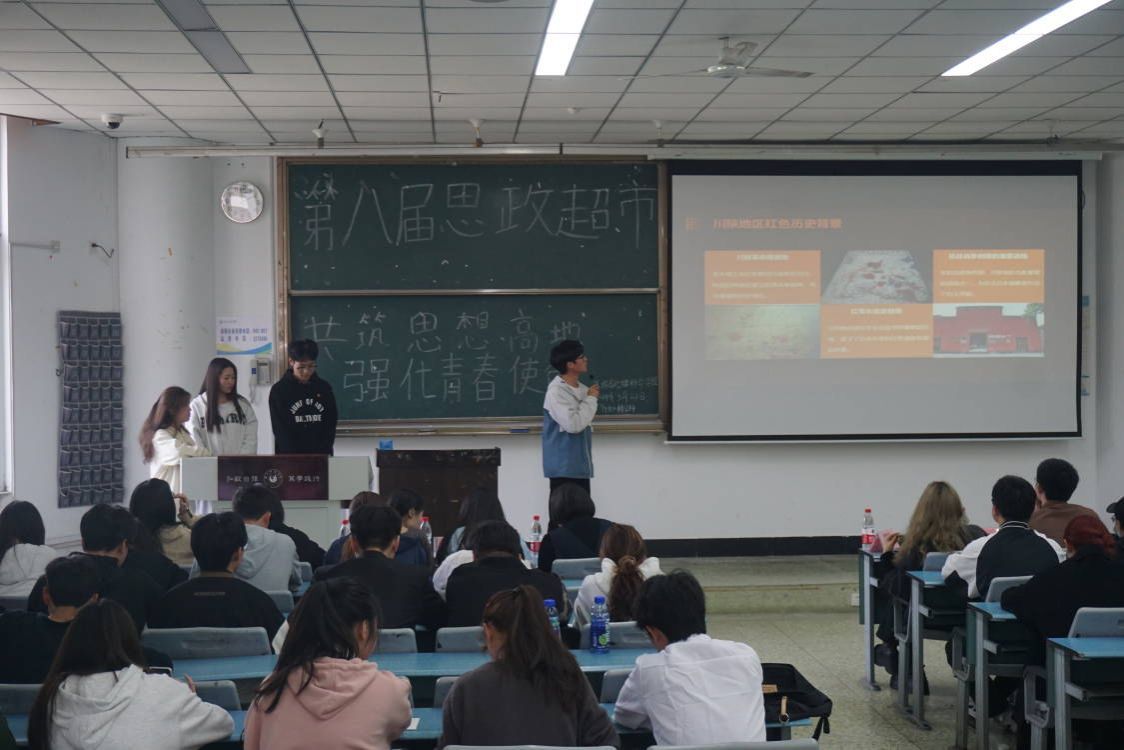 本网讯(文/江纳、武鹏飞 图/余丰羽)为深入学习宣传贯彻党的二十大精神,把广大团员青年的思想和行动统一到党的二十大精神上来,常态化开展团员和青年的主题教育,3月21日下午,旅游与地理科学学院(下简称“旅地学院”)在行知楼214教室开展了以“共筑思想高地,强化青春使命”为主题的第八届“思政超市”活动。学院分团委书记(学生工作办公室主任)江纳、辅导员助理侯怡旭、各团学组织负责人、各班学生代表及八个参赛团队参加了本次活动。