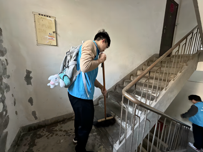 活动开始,志愿者们在负责人的带领下到达绿缘小区的活动地点。领完劳动工具后,志愿者们迅速分散到不同楼栋进行卫生打扫。活动中,志愿者们相互协作,默契配合,小区中的每一栋楼层都能看到他们认真清扫的身影。他们认真仔细地打扫着每一个角落,有的负责打扫楼梯,有的负责擦拭扶手,不放过任何一个细节。每个人都在尽自己最大的努力为小区的清洁贡献一份力量。在活动过程中,志愿者们充分发扬了不怕脏、不怕累的精神,并用实际行动诠释了奉献和担当。