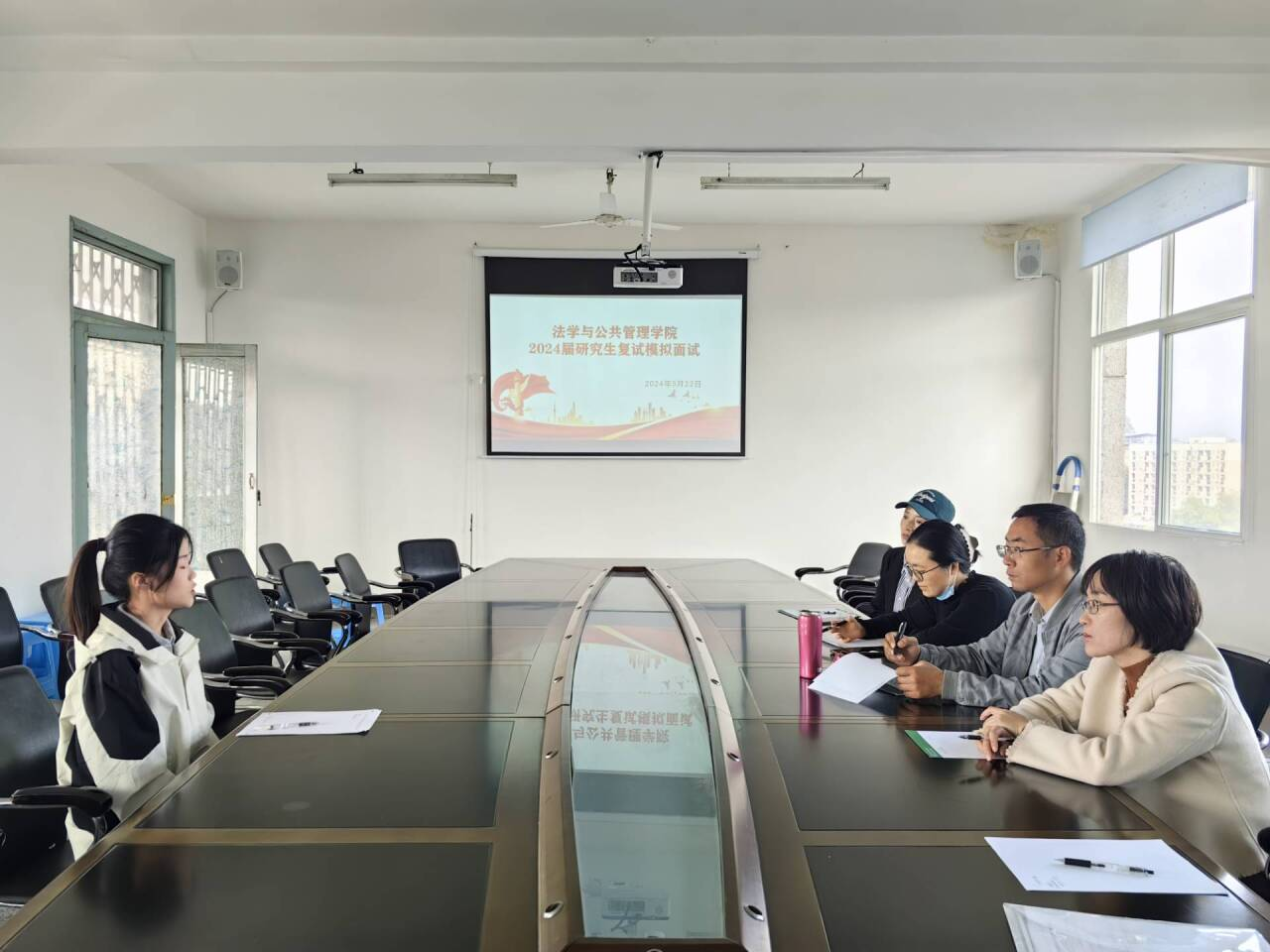 本网讯(文/江琳 图/江琳)为进一步提高考研成功率,解决在复试中遇到的问题,提振备考信心,增强综合竞争力。3月22日,法学与公共管理学院在博雅楼五楼会议室组织开展考研模拟面试培训。学院党委副书记杨兵、社工系主任李如春、专任教师丁木乃、张洁、刀知吉等参加了此次培训指导。