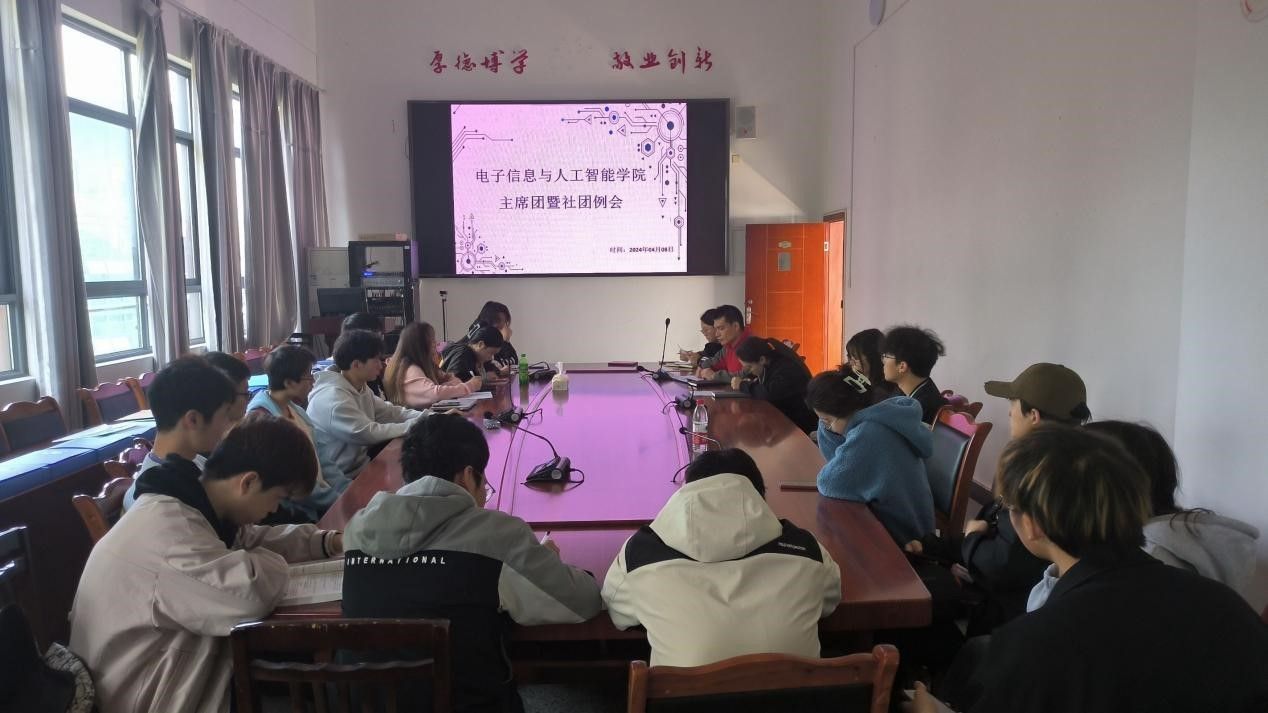 本网讯(文图/姜星宇)4月8日,电智学院在特教C501召开了主席团暨社团例会。本次会议由电子信息与人工智能学院分团委书记强光平,辅导员雷雄锴、肖苗、狄红霞,主席团各成员以及各社团的社长共同参与。