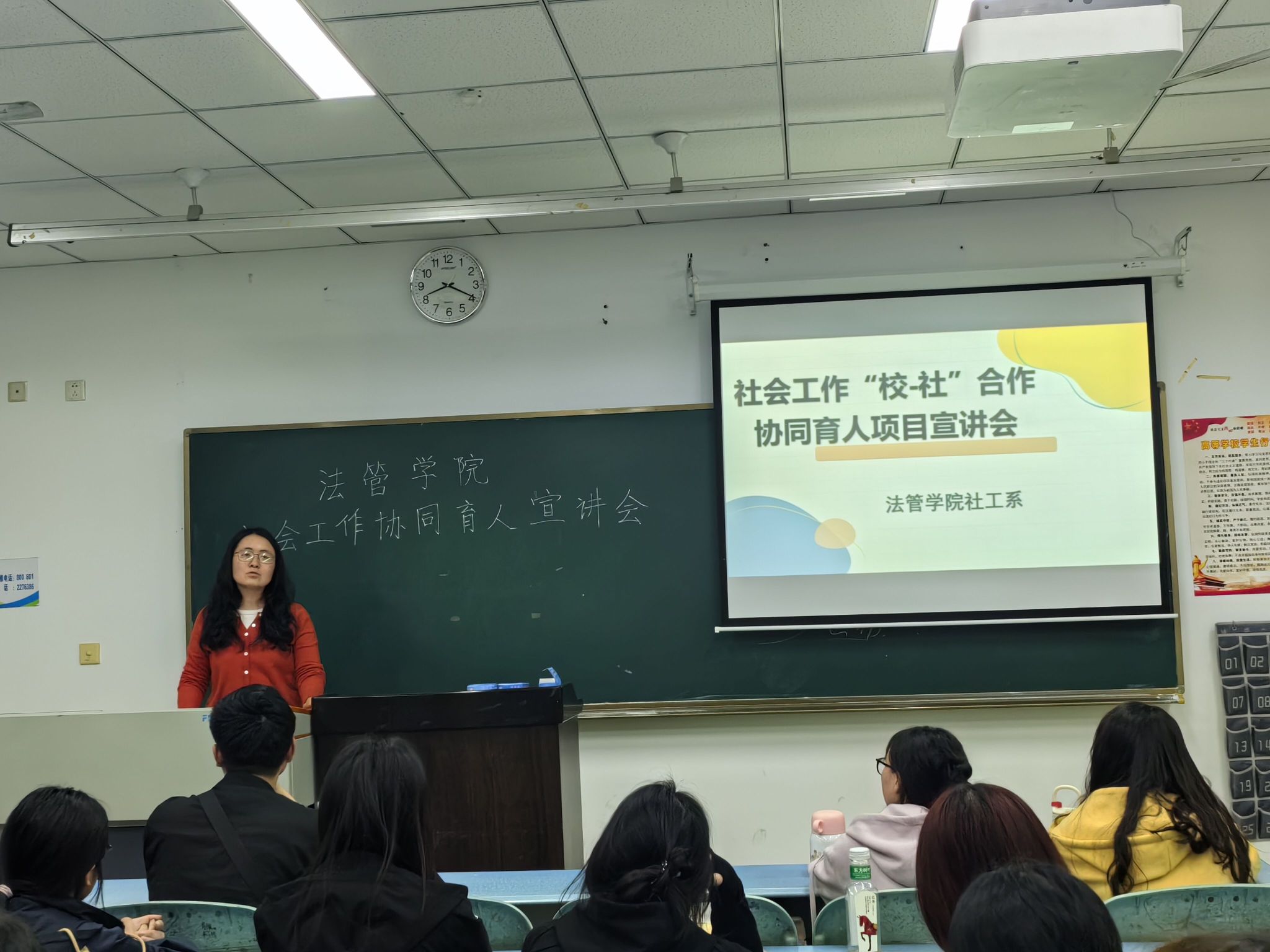 本网讯(文/邓雪梅 图/李如春、丁木乃)4月10日,我院社会工作“校-社”合作协同育人宣讲会在行知楼521举行,旨在通过宣讲会让23级社会工作专业的新同学更加深刻、直观地了解协同育人项目独特优势并吸引更多的同学参与其中。