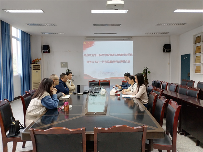 本网讯(文图/孙永兴)4月10日,旅游与地理科学学院党委书记徐秀云,党委副书记、院长郭剑英,副院长孙永兴一行到西华师范大学管理学院和地理科学学院学习交流。