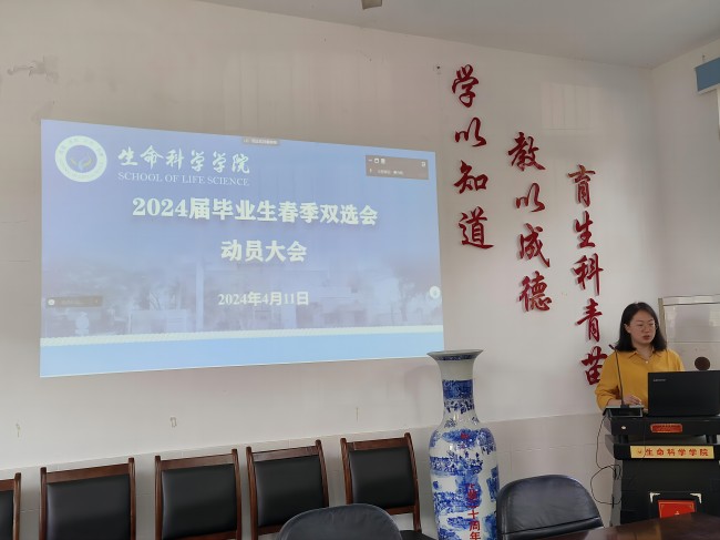 本网讯(文/叶丹 图/罗珊珊)为鼓励毕业生积极就业,进一步加强2024届毕业生就业工作。4月11日,生科学院在学院会议室采用线上腾讯会议召开了2024届毕业生双选会动员大会。生科学院党委副书记包天骏、辅导员曹力欢以及2024届毕业生参加会议。