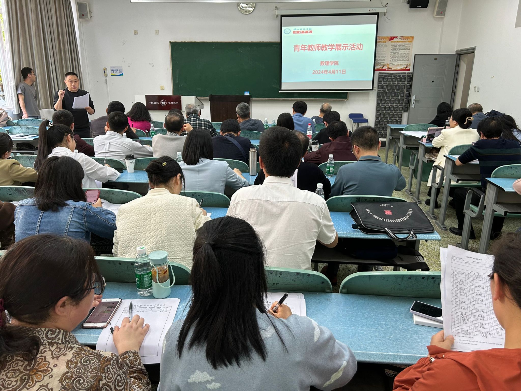 本网讯(文图/樊华娜)4月11日,数理学院在行知楼106教室举办了2024年春季青年教师教学展示活动,本次活动由副院长孙海主持,学院全体教职工参加了此次活动。活动共有7名刚进校的青年教师参与教学展示,每位参赛选手的展示时间为10分钟,学院特邀校级教学督导邹进教授,以及屈小兵、于恩锋、高仕龙、肖志刚、杨建会、江林巧共7人担任评委。