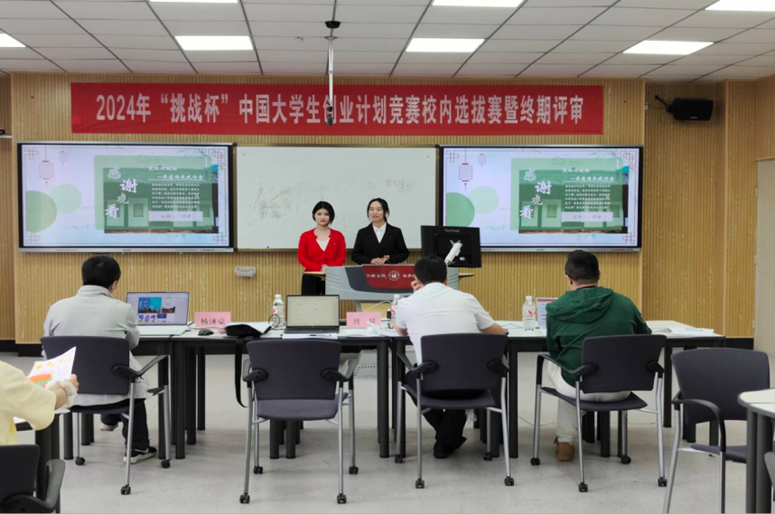本网讯(文/文雅丽、尹梓颖 图/杨宝珠)4月11日下午,2024年“挑战杯”中国大学生创业计划竞赛校内选拔赛暨终期评审于行知楼智慧教室举行。此次评审邀请到了校团委书记李东、生命科学学院教授刘超、电子信息与人工智能学院学科带头人杨济豪以及新能源材料与化学学院博士史凯担任评委,24个立项项目的指导老师及学生代表近200人共同参与。