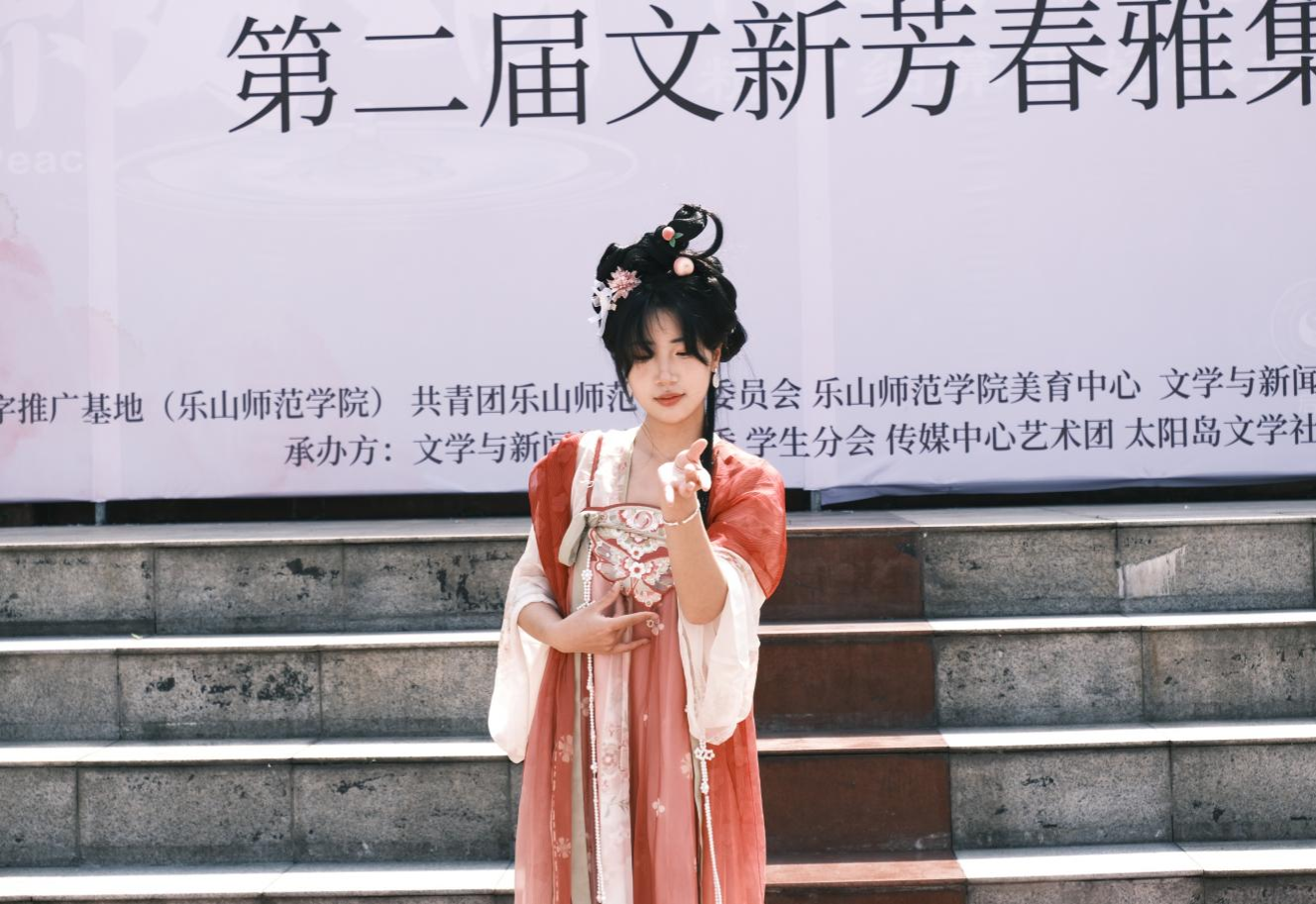 本网讯(文图/王佳艾)4月11日,文学与新闻学院(以下简称“文新学院”)成功举办了第二届“嘉定韵·三苏情”芳春雅集活动暨美育教育成果展活动。本次活动面向全体师生,由国家语言文字推广基地(乐山师范学院)、乐山市国学普及基地、经典诵读工作室共同主办,文新学院承办。