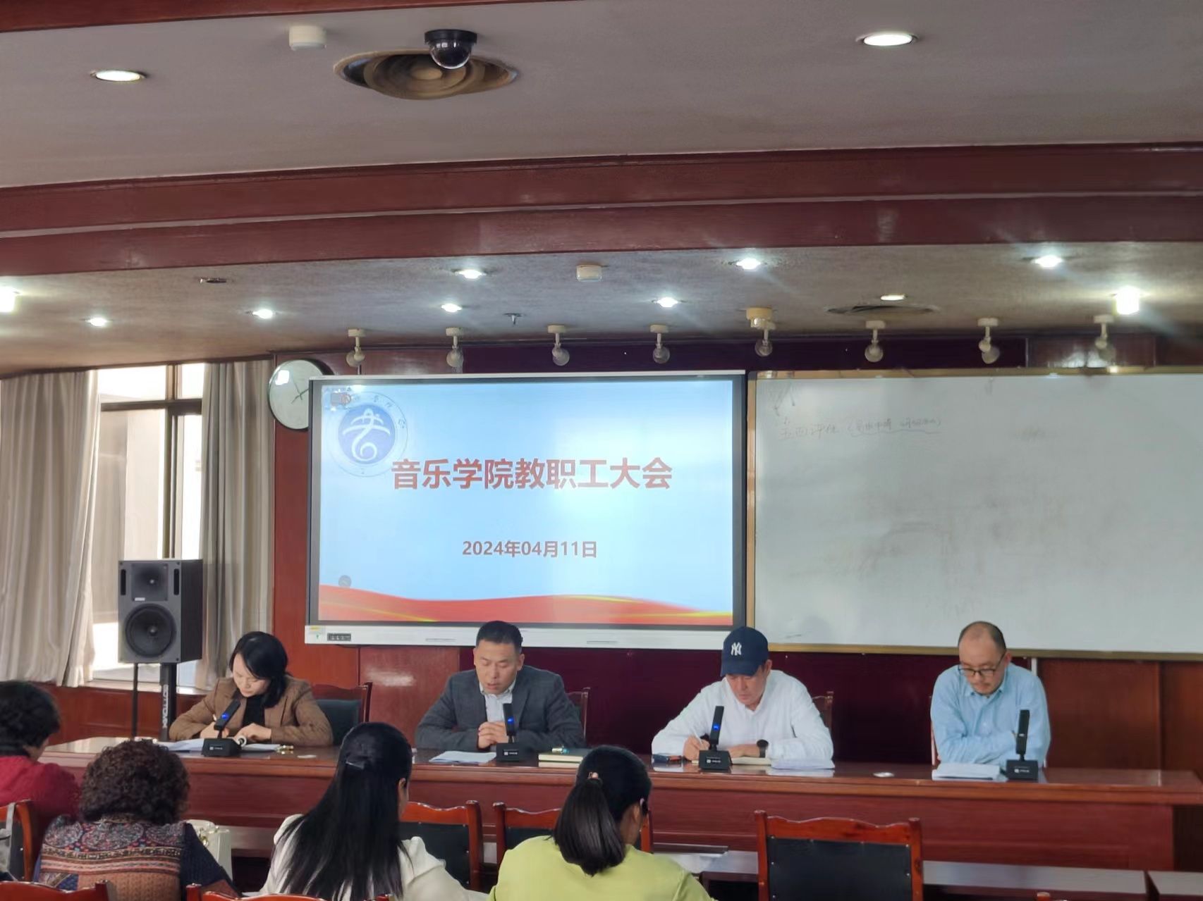 本网讯(文图/毛敏)4月11日,音乐学院召开全体教职工大会,大会由学院党委书记宋军主持,学院全体教职工参加了大会。
